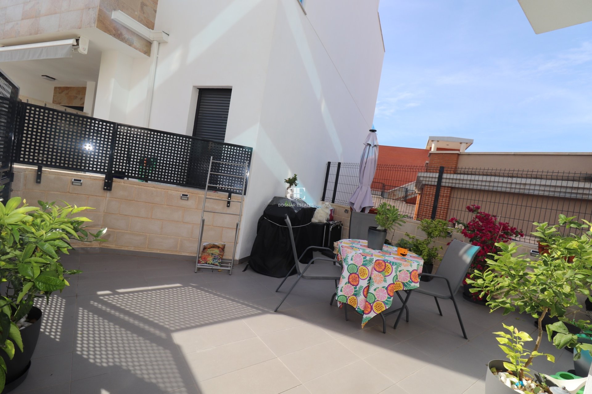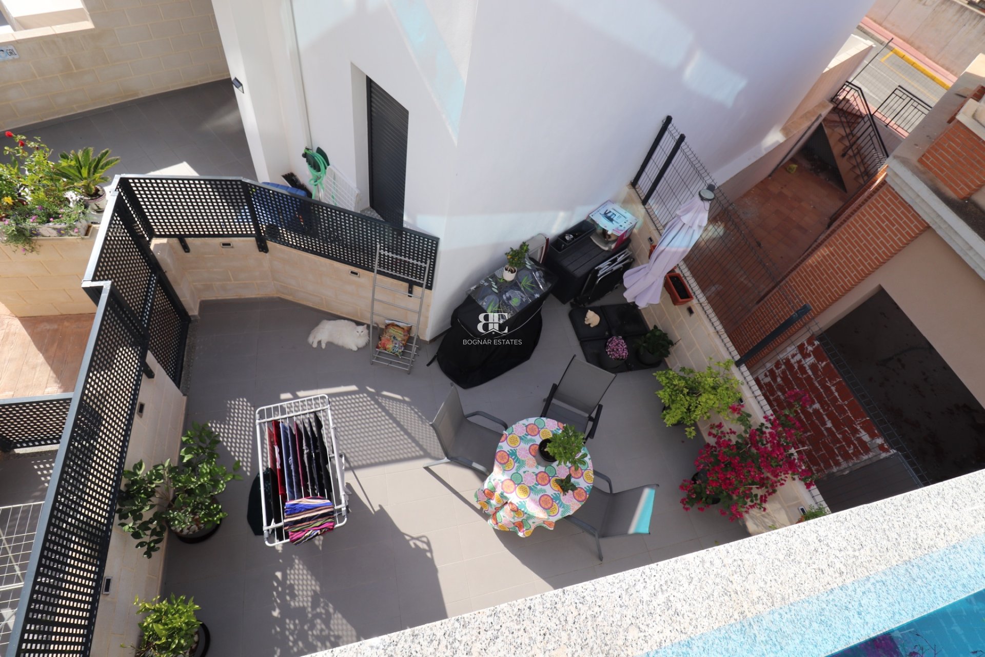 Das Haus ist komplett ausgestattet und verfügt auch über eine Doppelgarage. Das Haus wird über eine separate energieeffiziente Warmwasserpumpe mit Warmwasser versorgt. Diese Villa ist mit hochwertigen Materialien ausgestattet und im gesamten Treppenhaus mit verchromtem Glas ausgestattet. Neben dem großen sonnigen Solarium verfügt diese Villa auch über einen gemütlichen Hinterhof von 30 m2, der direkten Zugang zum gepflegten Swimmingpool mit Liegeflächen rundherum bietet. Die Garage bietet Platz für 2 Autos und Platz für genügend Stauraum (50 m2). Diese Immobilie hat viel zu bieten.