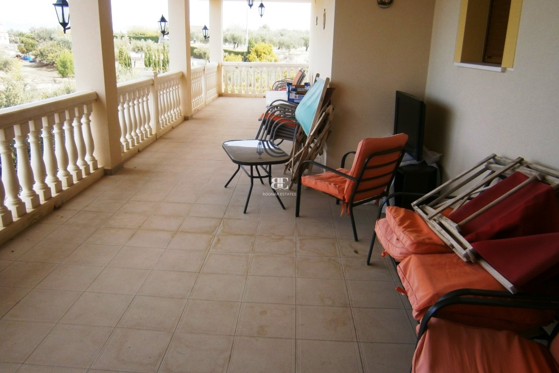 Large country house of 500 m2 built with wonderful panoramic views, situated 5 minutes from the village of L'Alqueria de Aznar, 10 minutes from the nearest town and 50 minutes from the coast. It is a double storey property, is in excellent condition having recently been built on a high standard inside and out. It features of 3 double bedroom with fitted wardrobes, a master bedroom with on-suite bath and fitted wardrobes, large lounge / dining room direct access to the back covered terrace which has stunning views down to the valley. The property has a modern style kitchen with utility area. Downstairs there is nice shower room and the rest is an open space currently used as a garage. That could easily be converted in more living space or a separate accommodation. This property benefits of agricultural water, mains electricity, double glazing throughout, available internet connection, pre-installation of air conditioning, oil central heating and a wood burning stove in lounge area. Sits within a generous plot of 8,781m2, which is fenced around the house complete with a lovely private swimming pool. There is an attractive low maintenance garden area around the house with plenty of trees for shade. The rest of the land is mostly growing olive trees.