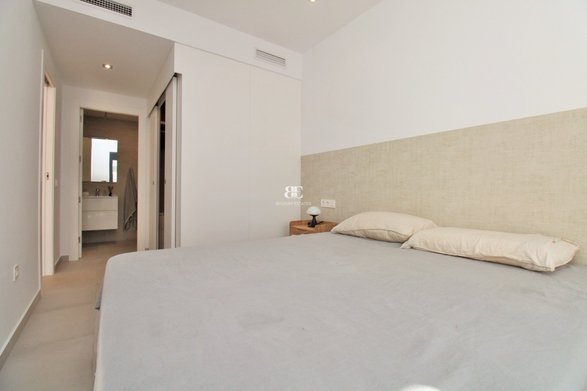 Dit moderne herenhuis met 2 slaapkamers, voltooid in 2022, ligt in een rustige woonwijk van Pilar de la Horadada, op loopafstand van het dorpsplein en alle voorzieningen. Het biedt een onderhoudsarme levensstijl, uitstekende buitenruimtes en een afwerking van hoge kwaliteit. Via dubbele poorten bereikt men het voorterras met parkeerplaats op eigen terrein. Een buitentrap leidt naar het indrukwekkende privé-solarium van 73 m² met buitendouche, ideaal om te ontspannen en te genieten van de zon. Onder de trap bevindt zich een handige afgesloten was-/bergruimte. Binnen is er een lichte open indeling. De moderne keuken beschikt over strakke kasten, geïntegreerde apparatuur, inductiekookplaat en ingebouwde oven en magnetron. Daarnaast is er een gastenbadkamer met douche en een tweede slaapkamer met inbouwkasten. De eethoek geeft toegang tot de royale hoofdslaapkamer met een eigen badkamer, een afsluitbare dressing, en directe toegang tot het terras en het zwembad. De woonkamer opent eveneens rechtstreeks naar buiten, waardoor binnen en buiten naadloos in elkaar overgaan. Buiten zijn er meerdere zit- en eetgedeeltes rond het prachtige verwarmde zwembad van 3 × 5 m met spa-plateau, perfect voor het hele jaar door. Gelegen in een rustige maar centrale omgeving van Pilar de la Horadada, op ongeveer 3,5 km van het strand, bereikbaar via een autovrije promenade. Gebouwd volgens hoge kwaliteitsnormen, met energielabel B, vloerverwarming in beide badkamers, gekanaliseerde airconditioning, en elektrische rolluiken op alle schuifpuien. Wordt ongemeubileerd aangeboden, een ideale woning voor permanente bewoning, vakanties of als hoogwaardige verhuurinvestering. Bezichtigingen op afspraak.