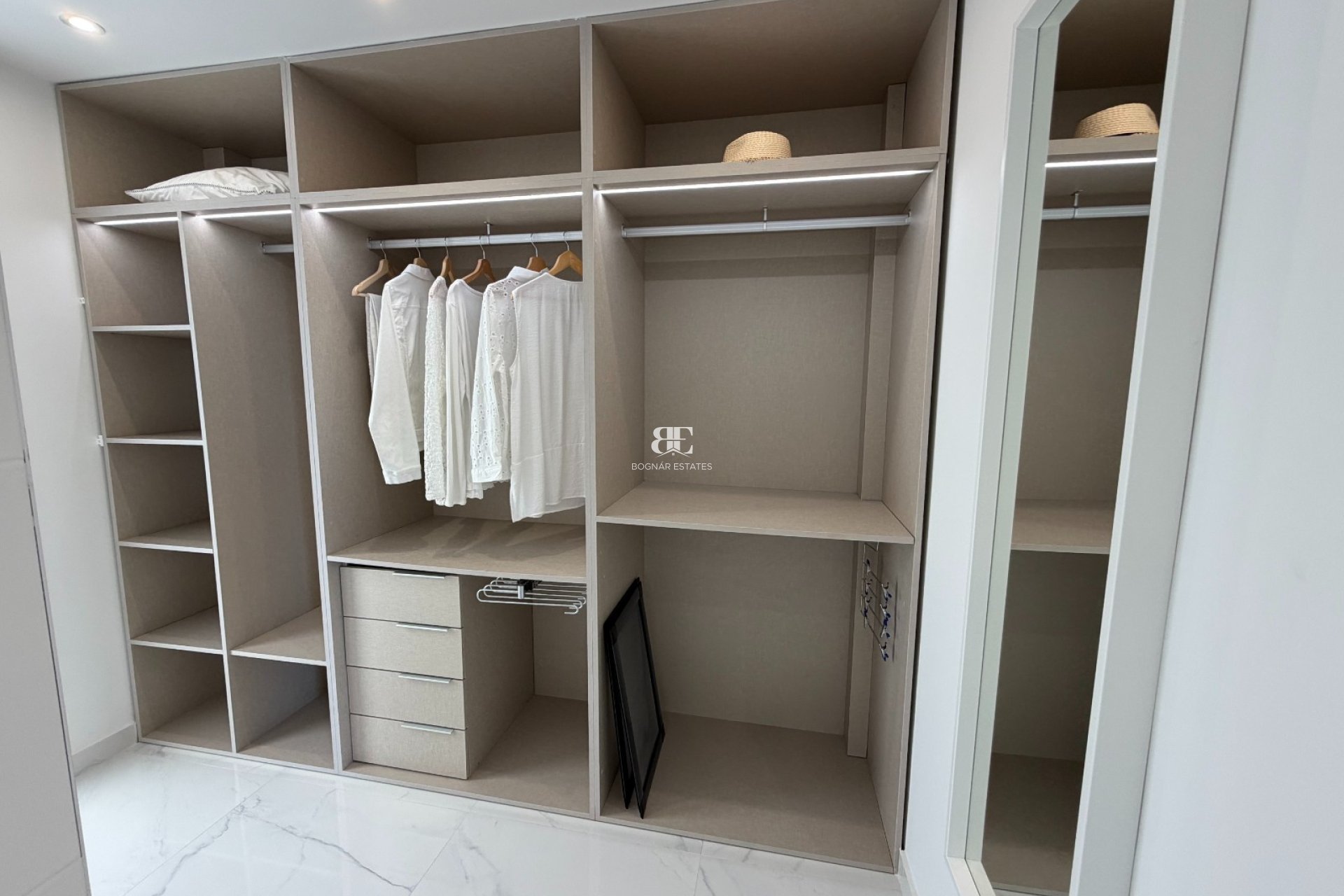 Deze moderne, vrijstaande villa met drie slaapkamers in La Laguna is gelegen in een populaire en gunstig gelegen wijk aan de Costa Blanca Zuid, op slechts 3 minuten lopen van een grote supermarktketen, 5 minuten rijden van de winkelstraat van Ciudad Quesada met al zijn voorzieningen, 8 minuten rijden van de golfbaan La Marquesa en slechts 10 minuten van de prachtige stranden. Deze lichte en prachtig onderhouden villa heeft een woonoppervlakte van 114 m² en is toegankelijk via een overdekt terras. Binnen profiteert de woonkamer van een prachtig, kamerhoog raam met uitzicht op het zwembad, en dubbele schuifdeuren van glas die direct toegang bieden tot de tuin. De open, goed uitgeruste keuken is voorzien van een ontbijtbar en loopt over in de eetkamer, waardoor een perfecte ruimte ontstaat voor modern wonen. Op de begane grond bevinden zich tevens een bijkeuken, een tweepersoonsslaapkamer en een badkamer met douche, met een trap naar de eerste verdieping. Boven zijn er nog twee tweepersoonsslaapkamers, waaronder een luxe master suite met een inloopkast en dubbele schuifdeuren van glas die toegang geven tot een privéterras. Een glazen schuifdeur leidt naar een stijlvolle doucheruimte met dubbele wastafels en een apart toilet. Vanaf deze verdieping is er toegang tot een privésolarium, compleet met een uitschuifbaar zonnescherm en een prachtig uitzicht over de zoutmeren en het omliggende landschap. Gelegen op een onderhoudsvriendelijk, aangelegd en betegeld perceel van 212 m², biedt de buitenruimte een privézwembad, een gedeelte met kunstgras, een stenen barbecue en parkeergelegenheid op eigen terrein. Extra voorzieningen zijn onder andere centrale airconditioning, waardoor dit een comfortabele woning is, het hele jaar door. Een fantastische moderne villa die stijlvol wonen biedt op een geweldige locatie aan de Costa Blanca Zuid, ideaal als permanente woning of vakantiehuis.